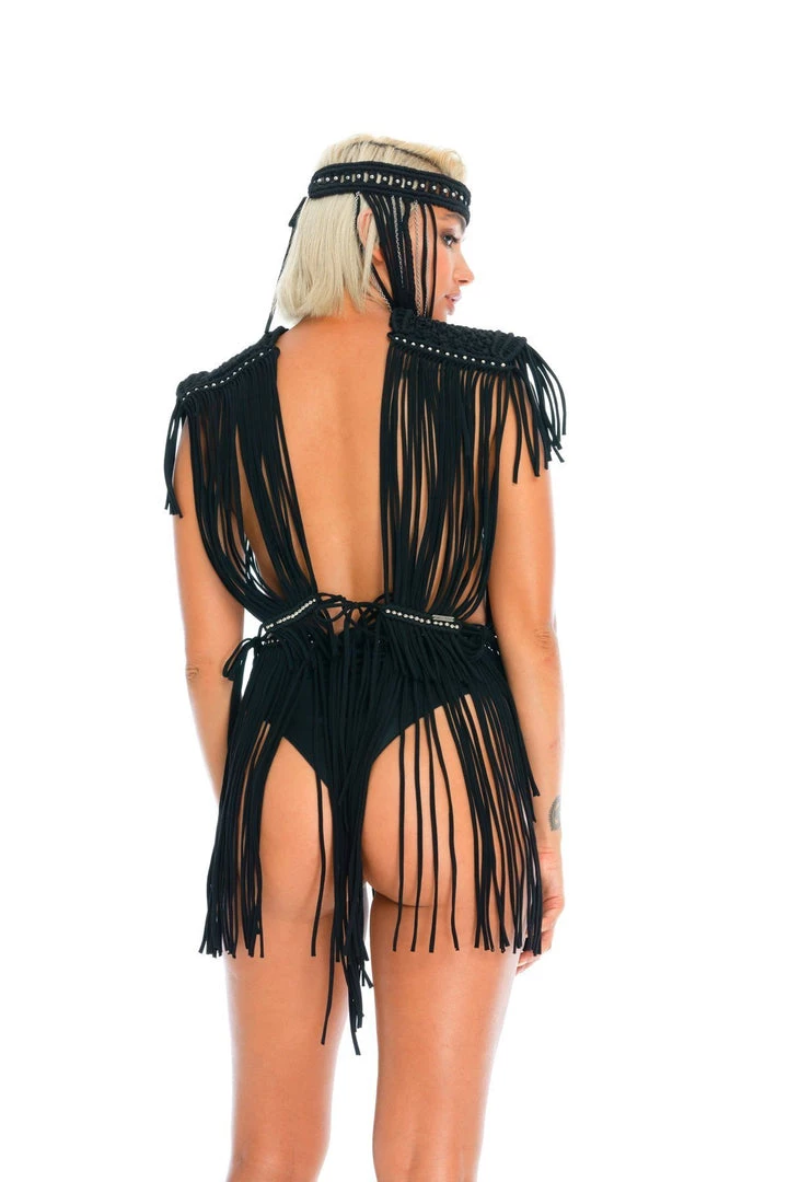 Worn with Ocean bralette in Black, also with Ocean bottoms in Black.