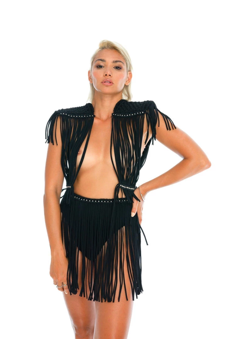 Dreamers mini skirt features a macrame waistband, embellished with silver beads. Pair with the matching Dreamers top to flow from day to night with ease.