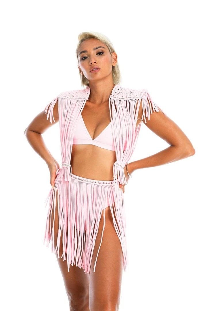 Styled with Dreamers mini skirt in Baby Pink, also with Oracle Dawn headpiece in Baby Pink.