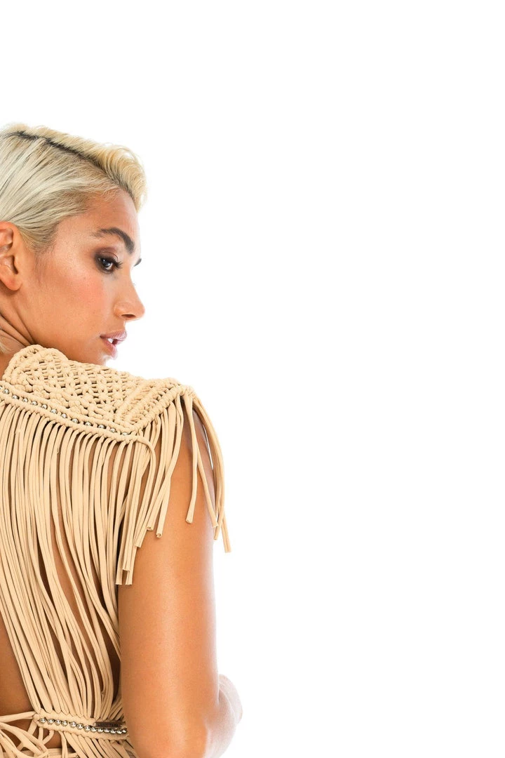 A fabulous hand-crafted macrame top for festival-goers. A unique Ladee Taha piece to treasure forever.Â