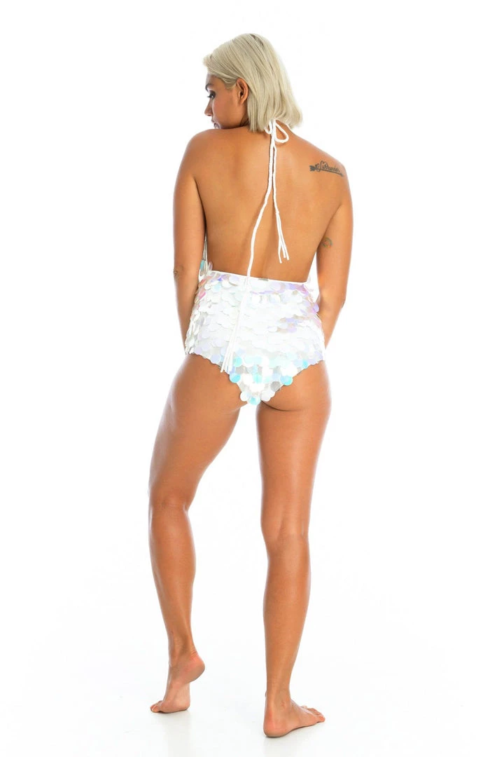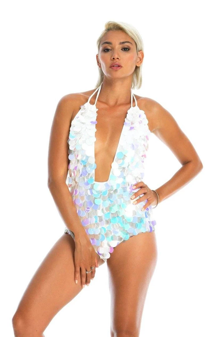 Get your harlequin on in our enchanting Harlequin sequin bodysuit. Create magic with your look, either tie halter behind or in front of your neck.