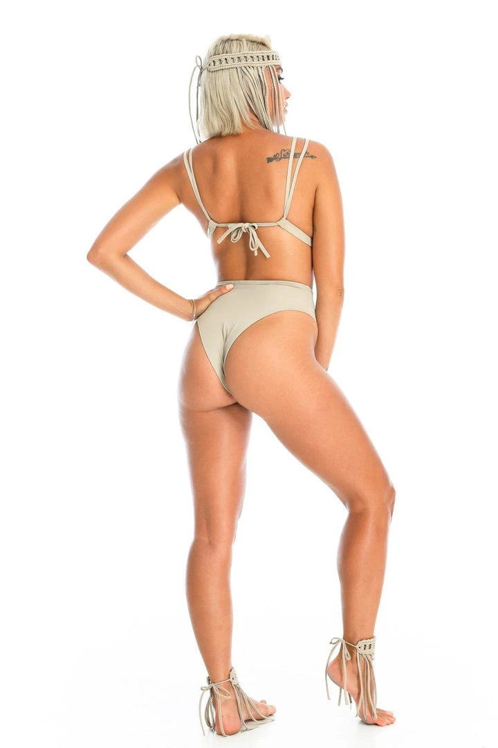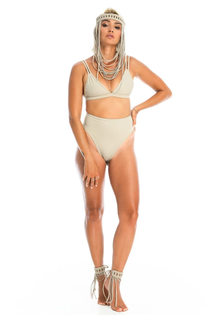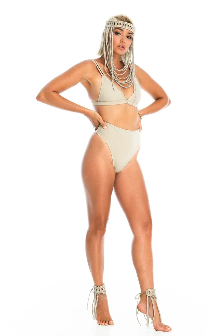 Worn with Ocean triangle top in Nude, also with Oracle Dawn headpiece in Nude.