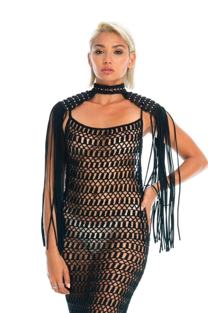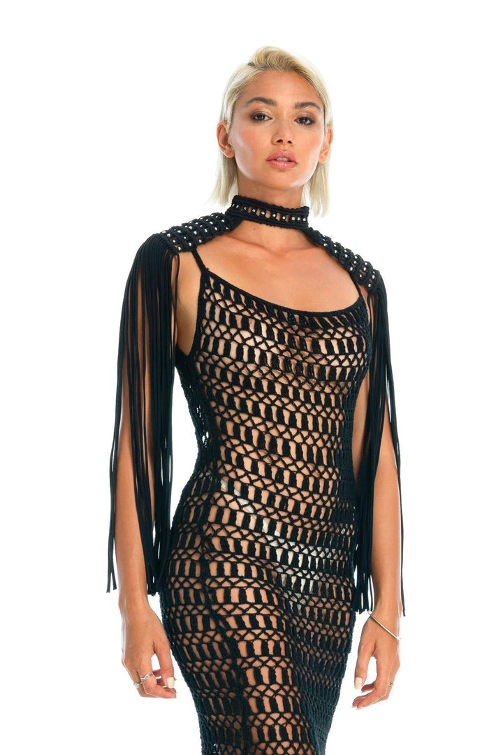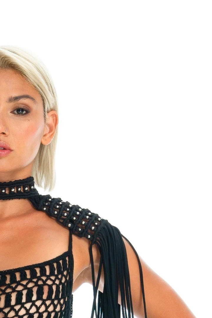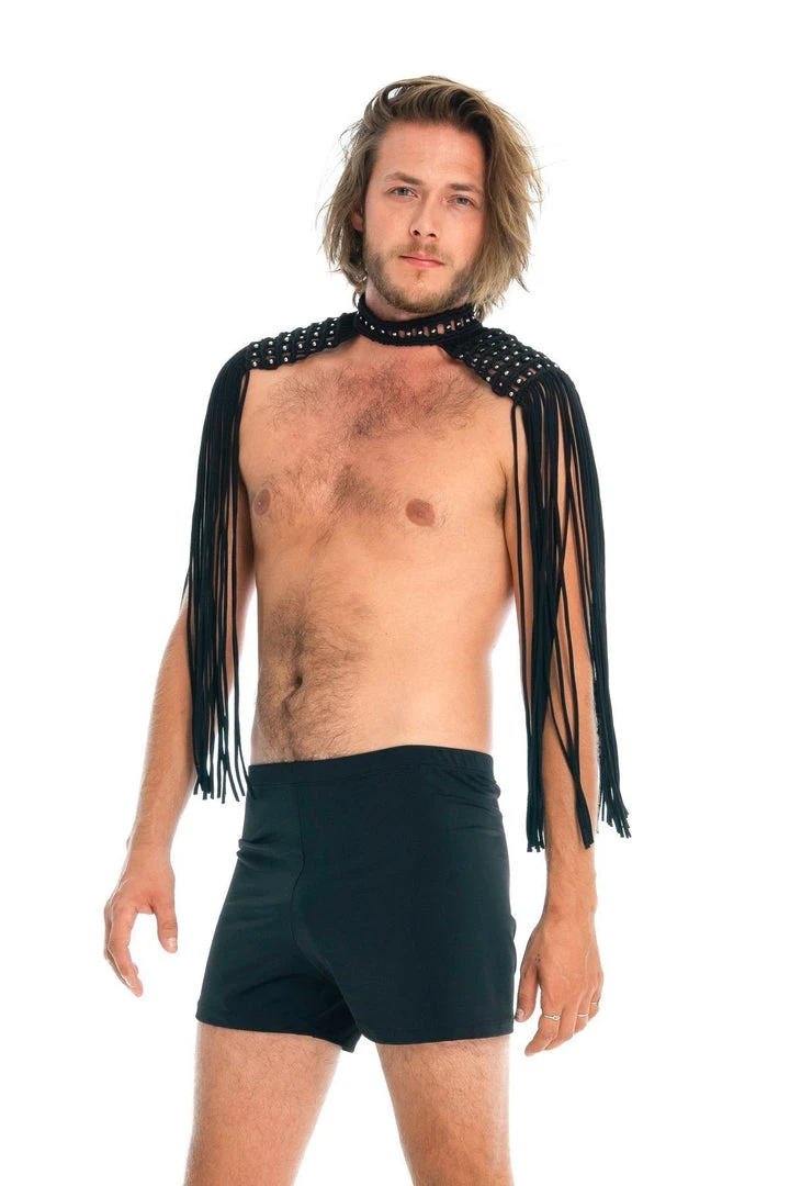 Sustainable hand-crafted epaulettes, embellished with silver beads. A stunning gender-neutral festival accessory.