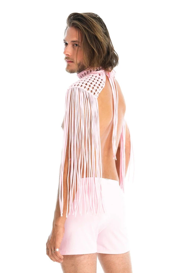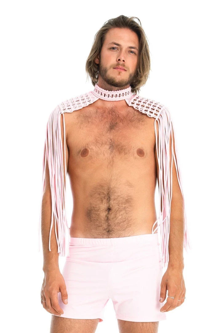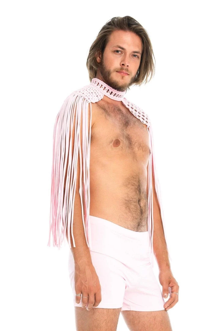 Sustainable hand-crafted epaulettes, embellished with silver beads. A stunning gender-neutral festival accessory.Â