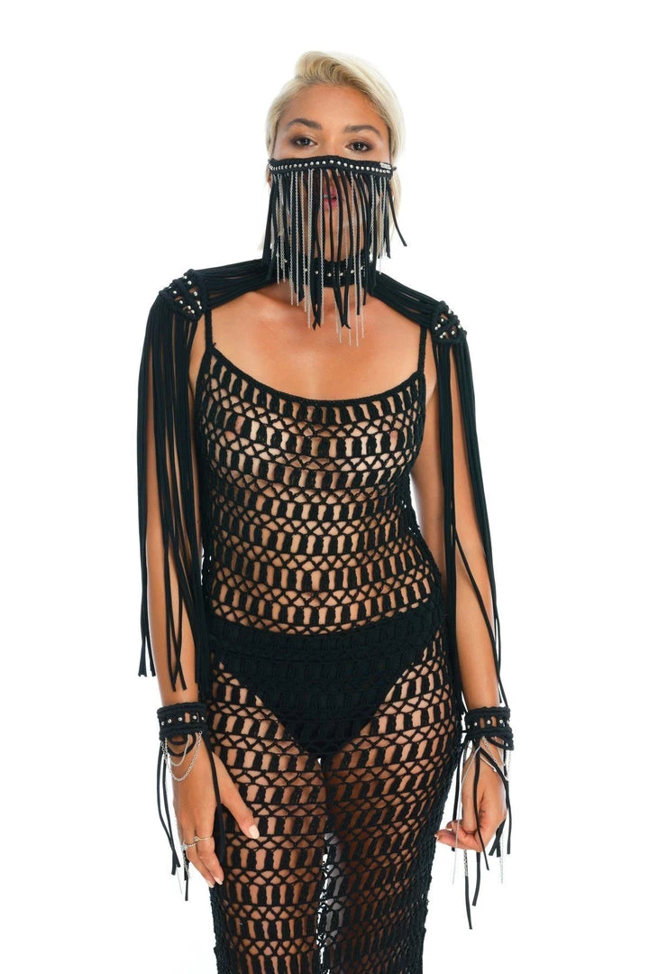 Start trippin’ and flippin’ over these Oracle Dawn sustainable festival epaulettes- shoulder top. Handmade macramé body jewellery. A top for babes who love to feel good!