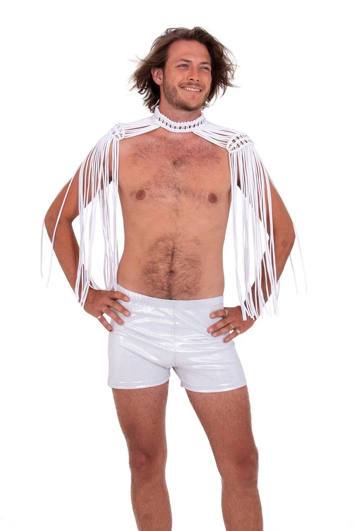 Start trippin’ and flippin’ over these sustainable gender neutral festival epaulettes shoulder top. Handmade macramé body jewellery.