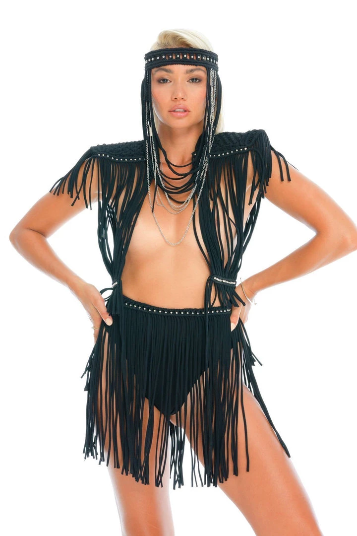 Worn with Ocean triangle bralette in Black, also with Dreamers top in Black and Dreamers mini skirt in Black.