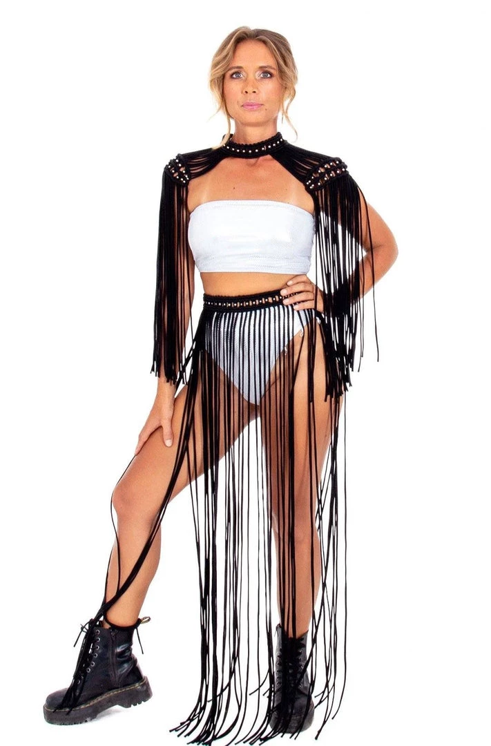 Rise like the sun at dawn in this beautiful Oracle Dawn sustainable hand-crafted macrame festival fringe skirt.Â