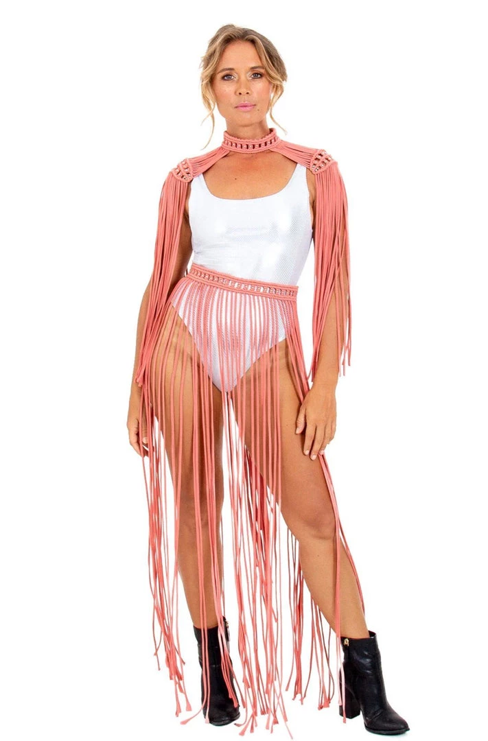 Rise like the sun at dawn in this beautiful Oracle Dawn sustainable hand-crafted macrame festival fringe skirt.Â
