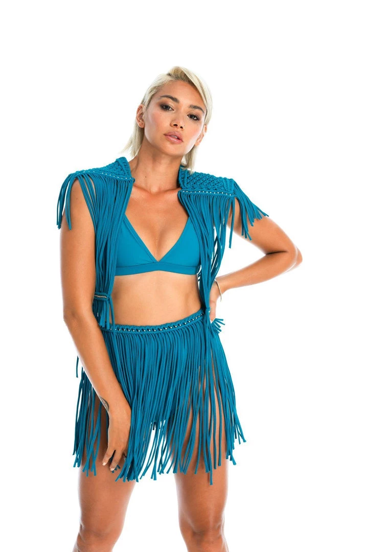 Styled with Dreamers mini skirt in Teal, also with Ocean bottoms in Teal.