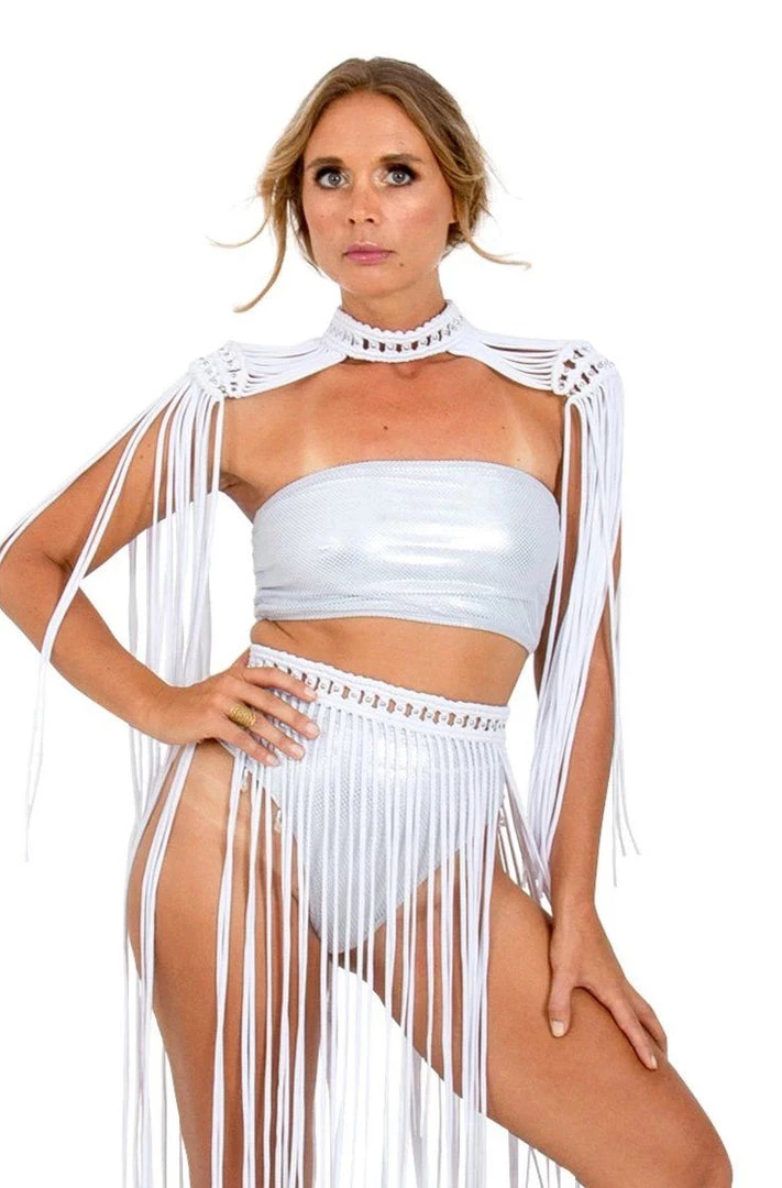 Start trippin’ and flippin’ over these Oracle Dawn sustainable festival epaulettes- shoulder top. Handmade macramé body jewellery. A top for babes who love to feel good!