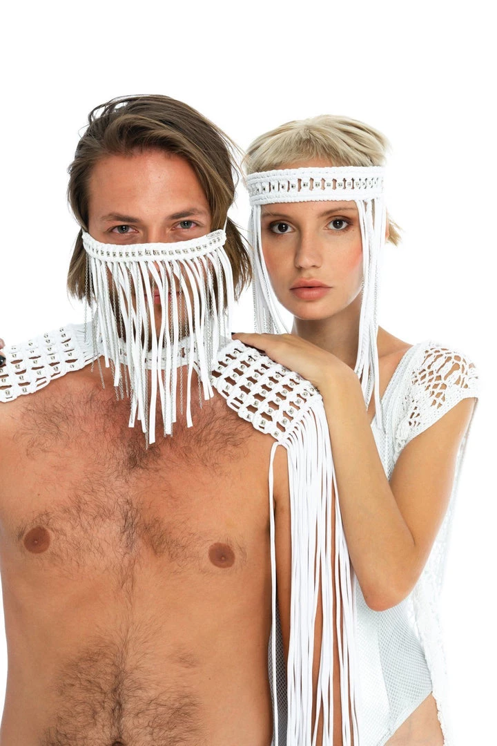 A dreamy goddess festival headpiece, embellished with silver beads and chain. This stunning headpiece comes with the added feel-good factor of being a Ladee Taha zero waste treasure.