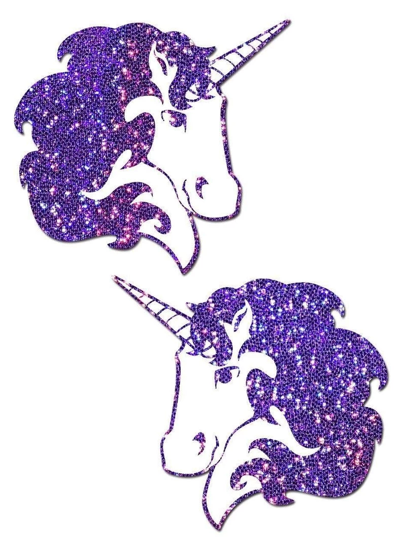 Purple Glitter Unicorn Nipple Pasties by Pastease® are hand-made in the USA of soft form-fitting glittery material that forms seamlessly to curves and resists wrinkling over hardening nipples.