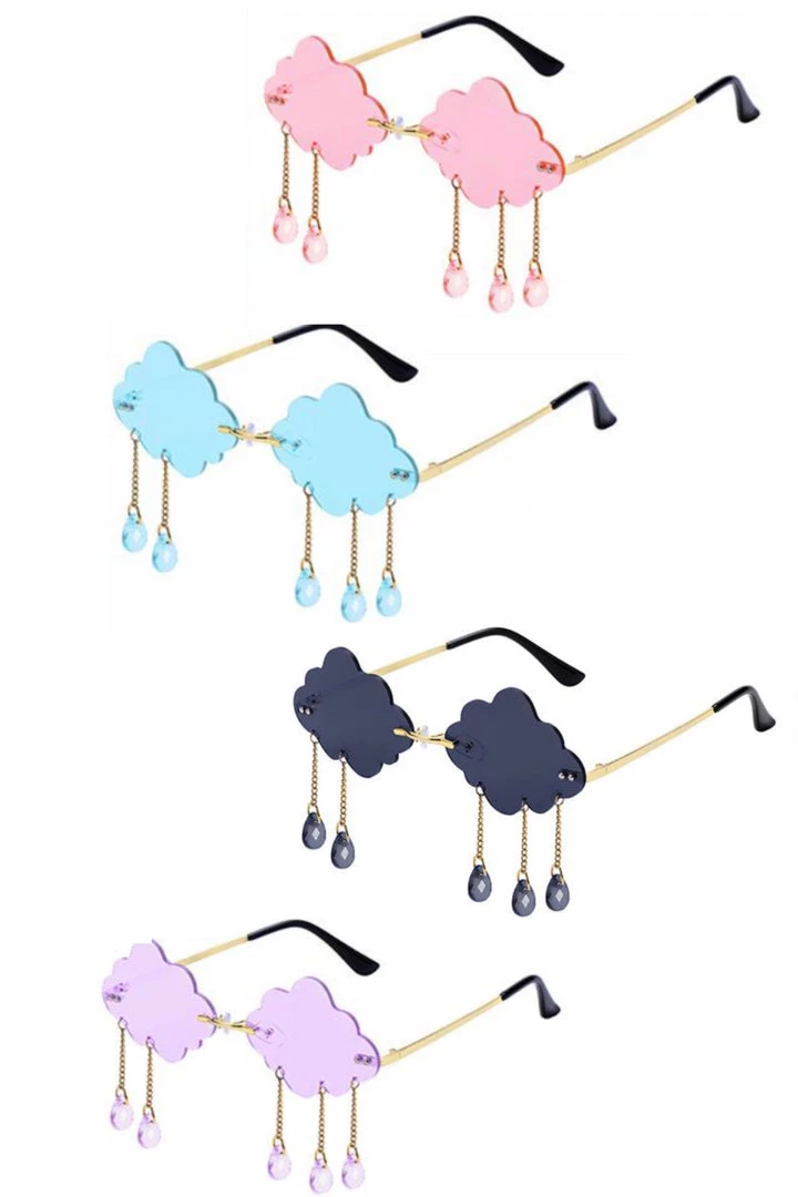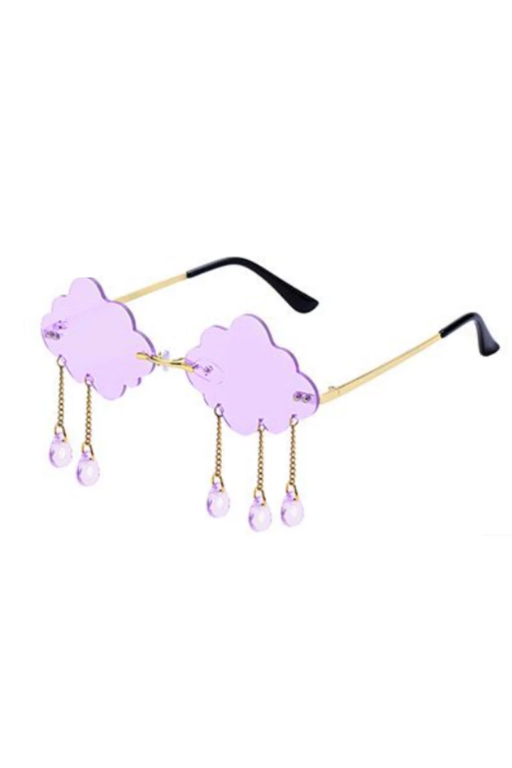 Your judgment might be cloudy but at least your sunnies will be clear skies. Get your head into the clouds with candy-colored Cloudy Judgement Dangling Jewels Raincloud Sunglasses.