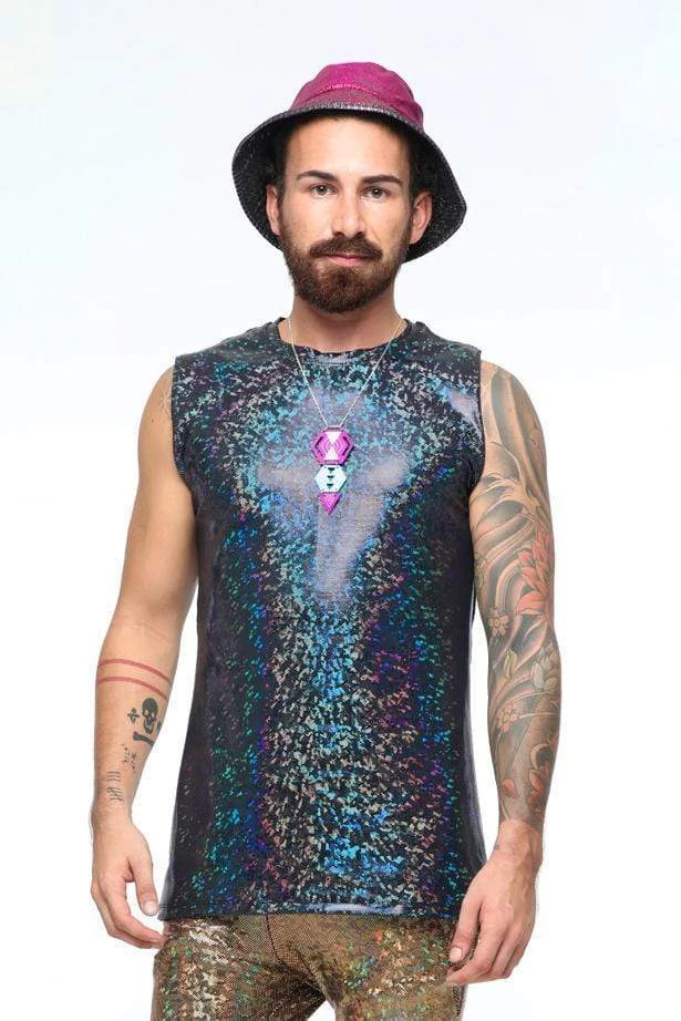 Our Holographic Sleeveless Tee is the perfect festival basic.