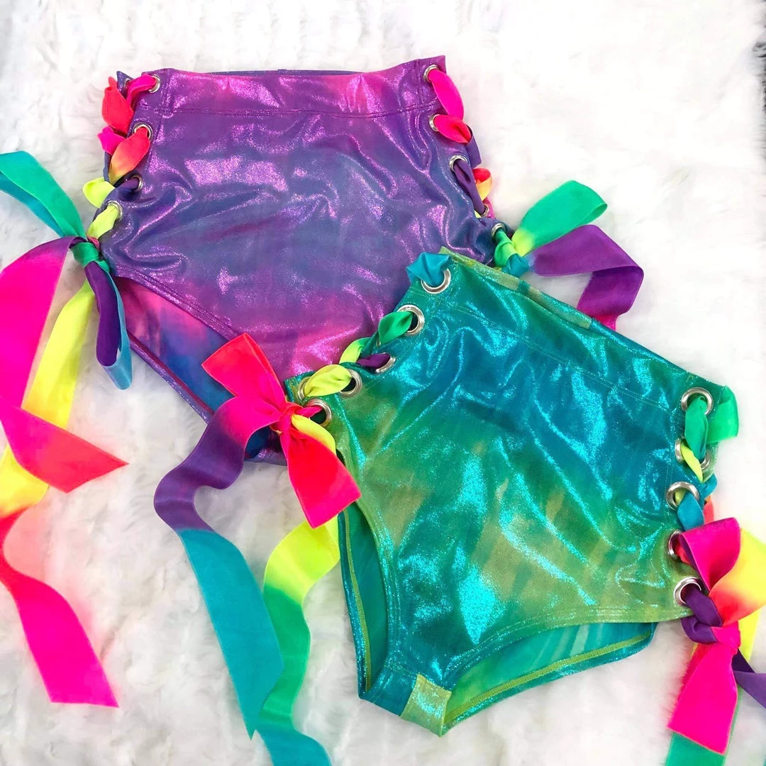 Pictured here with our Rainbow Bright Hot Pants & Iridescent Pink Kimono Vest.